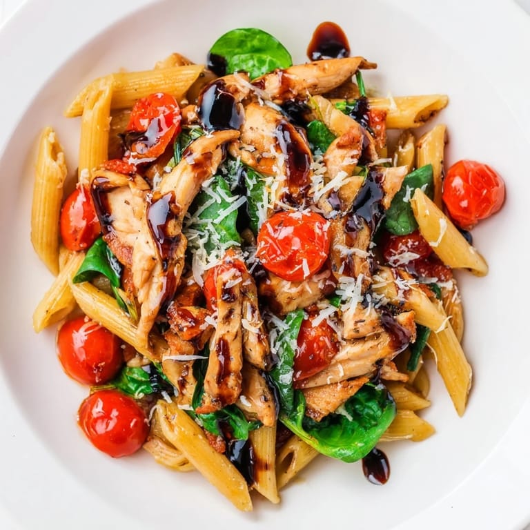 Save My neighbor once knocked on my door holding a bag of wilted spinach and a bottle of balsamic vinegar, asking if I had any quick dinner ideas. We threw together what became this pasta in under an hour, and she still texts me photos every time she makes it. The way the balsamic reduces into a sticky, glossy glaze that clings to every piece of chicken is something I never get tired of watching. It smells like a restaurant kitchen but comes together with the kind of ease that makes weeknight cooking feel less like a chore. This dish taught me that elegance doesn't require complexity.