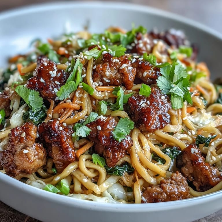 This recipe is a template, not a rulebook. I've swapped ground pork for turkey, chicken, or even crumbled tofu, and each version has its own charm. You can add snap peas, bok choy, or thinly sliced bell peppers depending on what's in your crisper. If you want it spicier, double the chili-garlic sauce or add a handful of sliced fresh chilies. For a richer bowl, top it with a soft-boiled egg or a drizzle of chili oil.