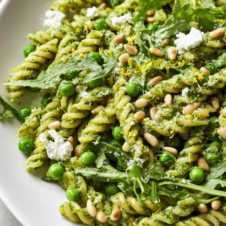 - Toss the cooled pasta with all that pesto, adding a splash of the reserved pasta water if it feels too thick, then fold in the peas, arugula, lemon zest, and those extra toasted pine nuts